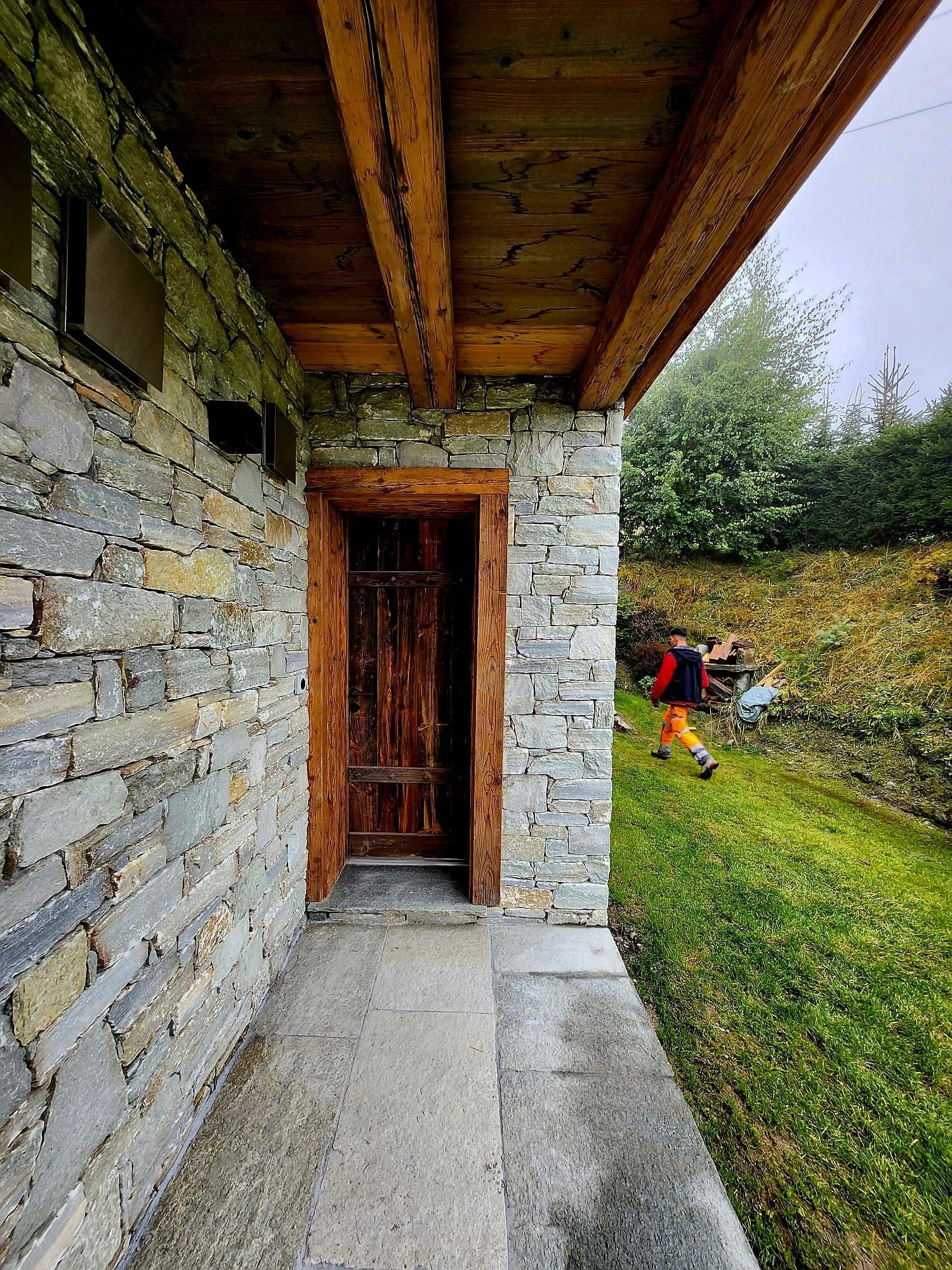 Mur en pierre sèche ou jointée, dallage, fontaine, lavabo, table, banc, tablette, chapeau de cheminée